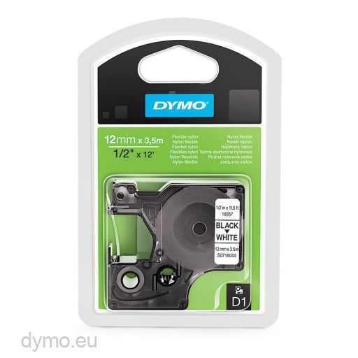 Dymo 12mm Black On White Permanent Nylon D1 Tape (16957)